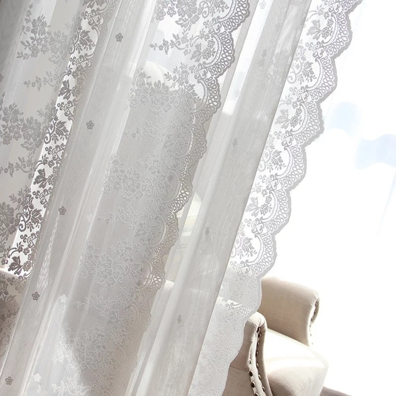 Přineste kouzlo s Bílou krajkovou záclonou s květy