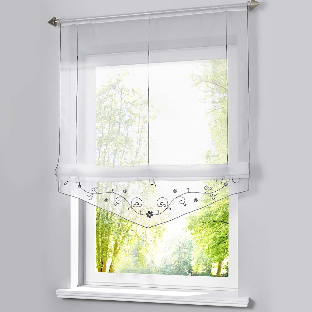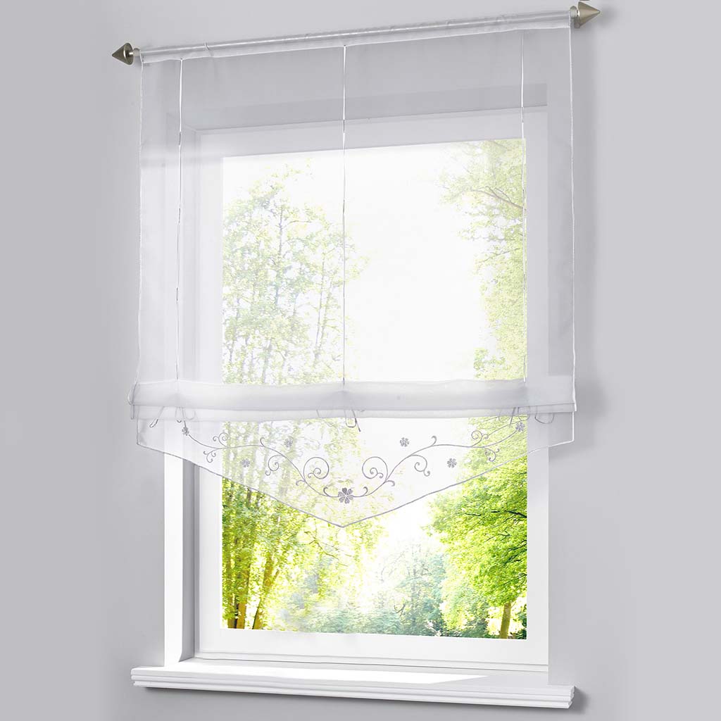 Hledáte ten správný doplněk, který oživí vaši kuchyni a zároveň jí dodá šmrnc? Naše Bílá římská záclona je přesně to, co potřebujete! Je to jednoduché, elegantní řešení, které se hodí do každého interiéru. Její průsvitná látka propouští dostatek světla, takže vaše kuchyně bude vždy krásně prosvětlená, a přitom vás ochrání před zvědavými pohledy zvenčí. Díky jemné výšivce s květinovými motivy a vlnitým linkám na spodním okraji přidá do vaší kuchyně něžný a hravý prvek.