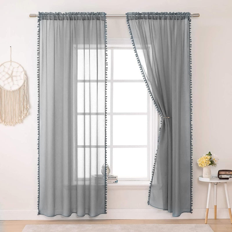 Proč si vybrat naši bílou záclonu s ozdobnými bambulkami?