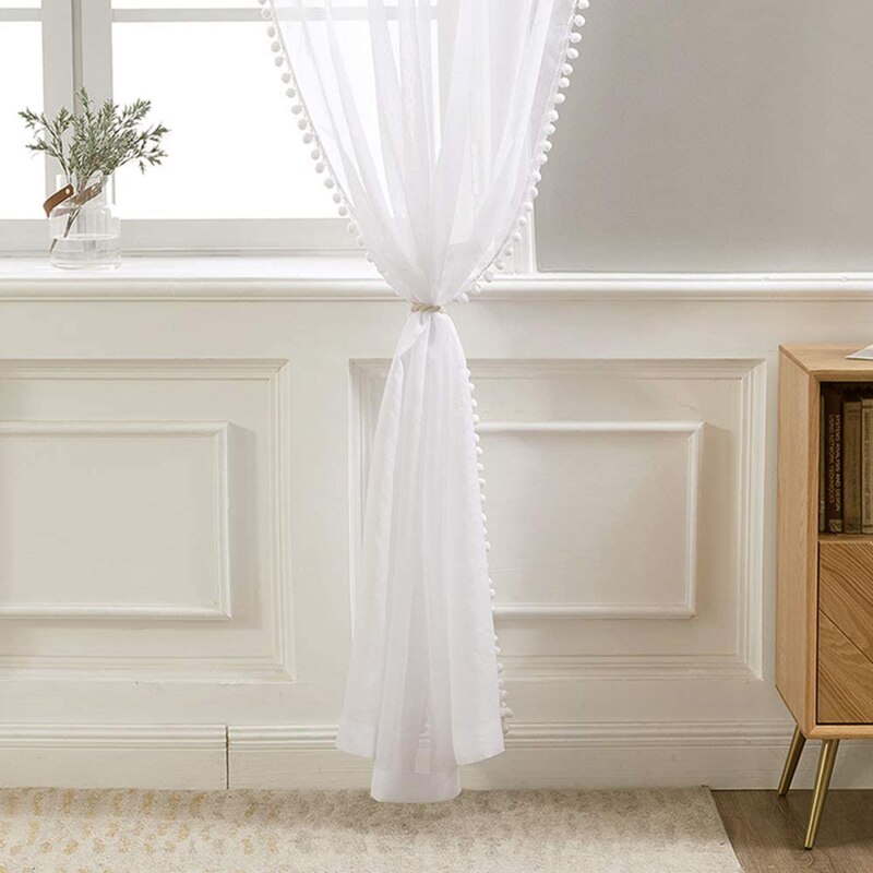 Klíčové vlastnosti bílé záclony s ozdobnými bambulkami: