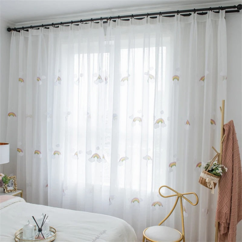 Dopřejte svému dítěti ten nejkrásnější sen s Dětskou záclonou s duhou a obláčky.