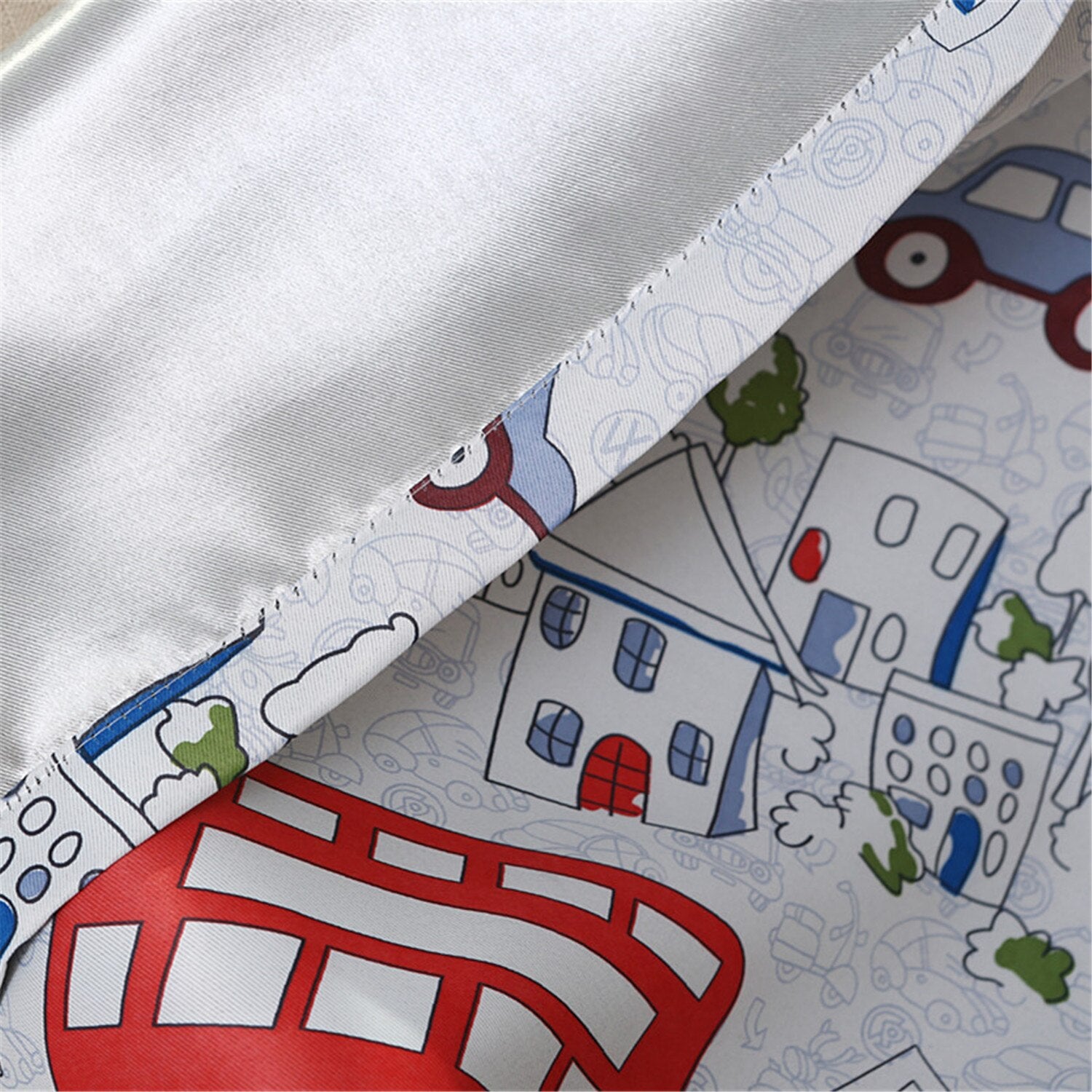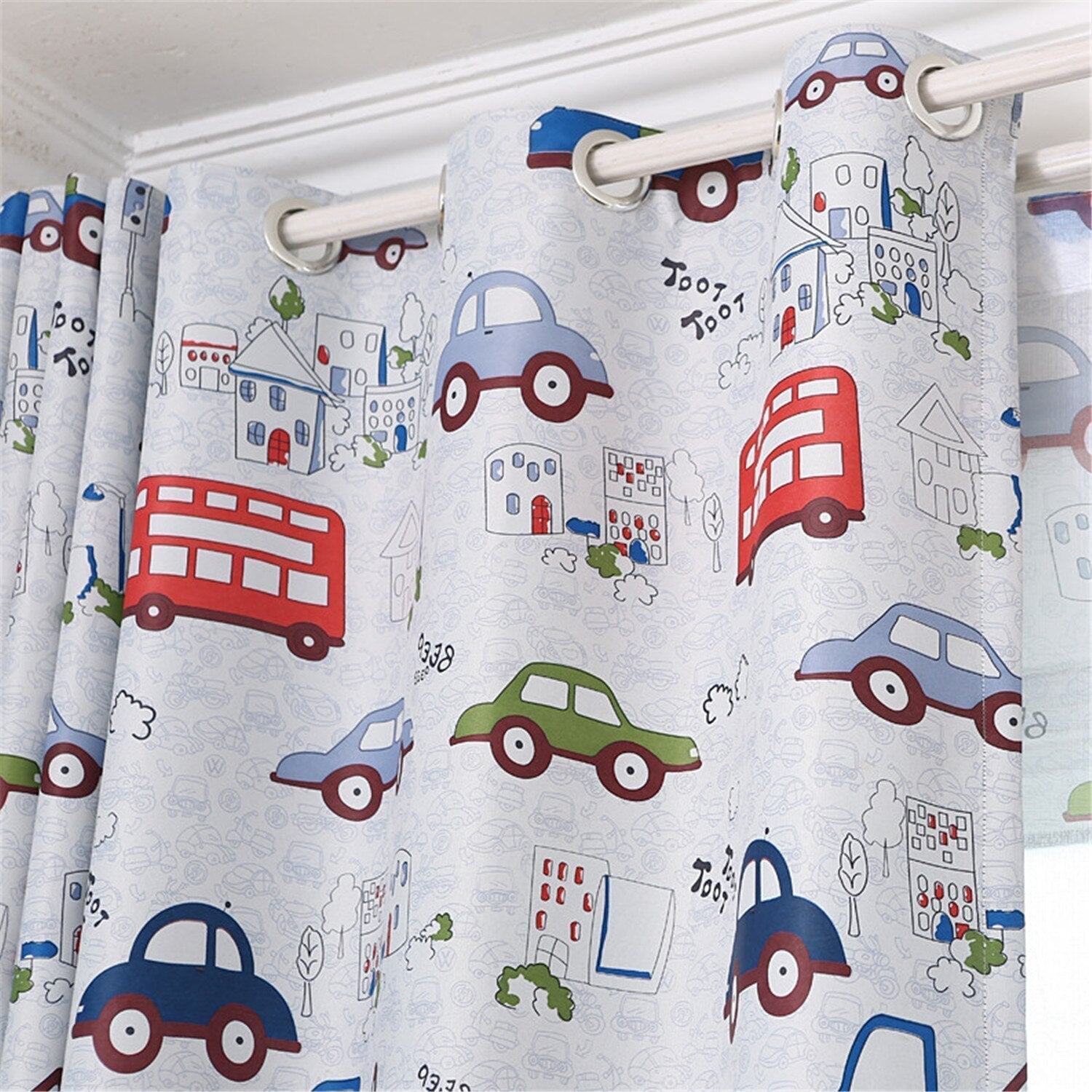 - Hravý design s auty: Roztomilý potisk autíček, autobusů a budov v živých barvách, který podpoří fantazii a vnese radost do dětského pokoje.
