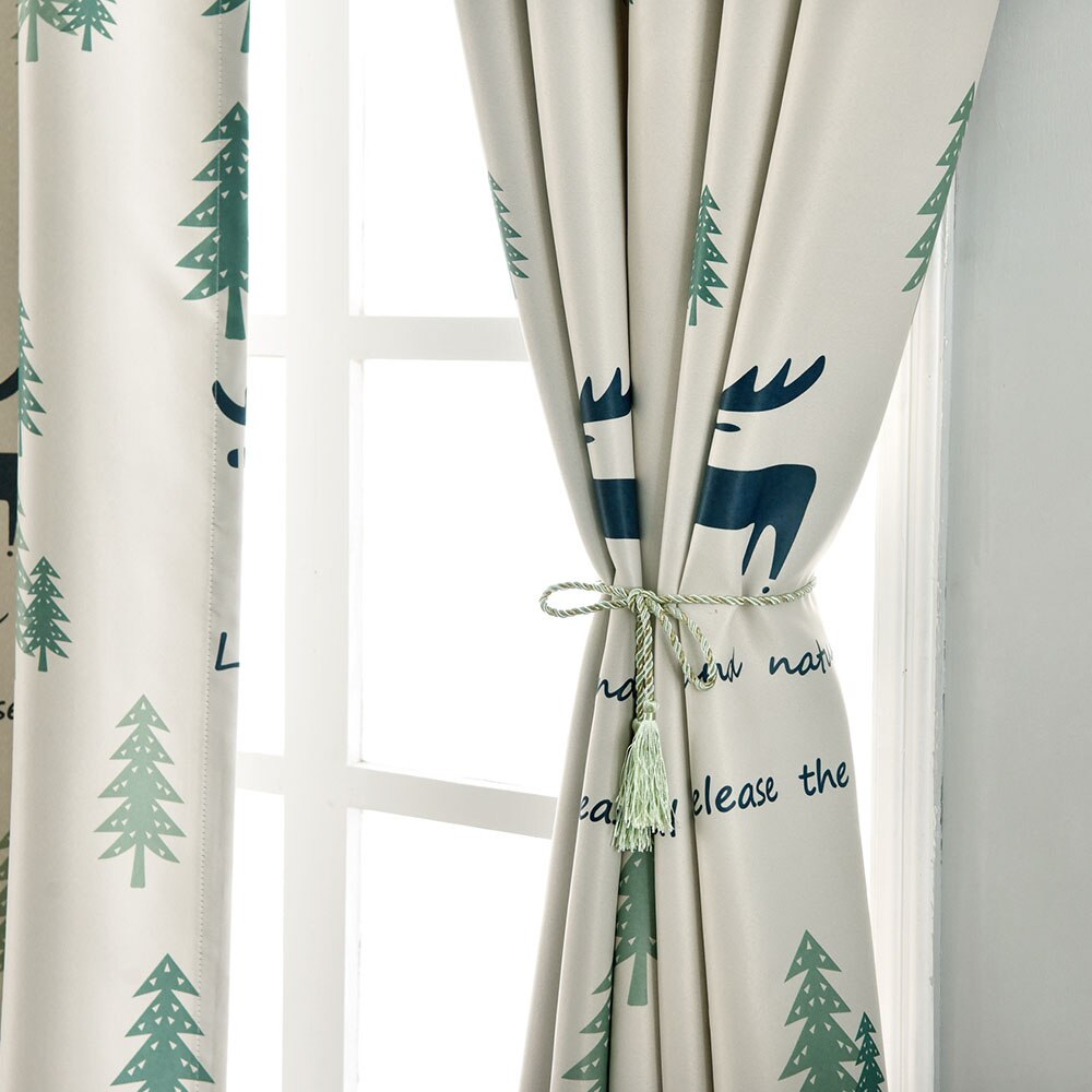 Každý detail tohoto závěsu byl pečlivě navržen tak, aby evokoval pocit klidu a pohody lesního prostředí. Horní část závěsu v jemné zelené barvě připomíná koruny stromů, zatímco střední bílý pruh s detailní grafikou stromů a siluetami hravých jelenů vytváří okouzlující scenérii. Drobné tečky, jako padající sníh nebo jiskřičky světla, dodávají designu pohádkový nádech. Spodní šedý pruh elegantně doplňuje celkový vzhled a dodává závěsu moderní a sofistikovaný vzhled, který se snadno kombinuje s ostatním nábytkem. Díky kvalitnímu tisku zůstanou barvy živé a detaily ostré po dlouhou dobu, takže se vaše dítě bude moci těšit z jeho krásy každý den.