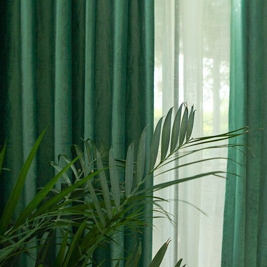 Představte si, jak se vaše ložnice nebo obývací pokoj promění v útulné a klidné útočiště. Tyto jedlově zelené sametové zatemňovací závěsy nejsou jen obyčejnou dekorací oken; jsou pozvánkou k jedinečnému pohodlí a sofistikovanému stylu. Zažijte hluboký, nerušený spánek, zvýšené soukromí a dotek opulentní elegance, která pozvedne každou místnost. Bohatý, hebký sametový materiál nádherně splývá a dodává prostoru teplo a nadčasovou eleganci.