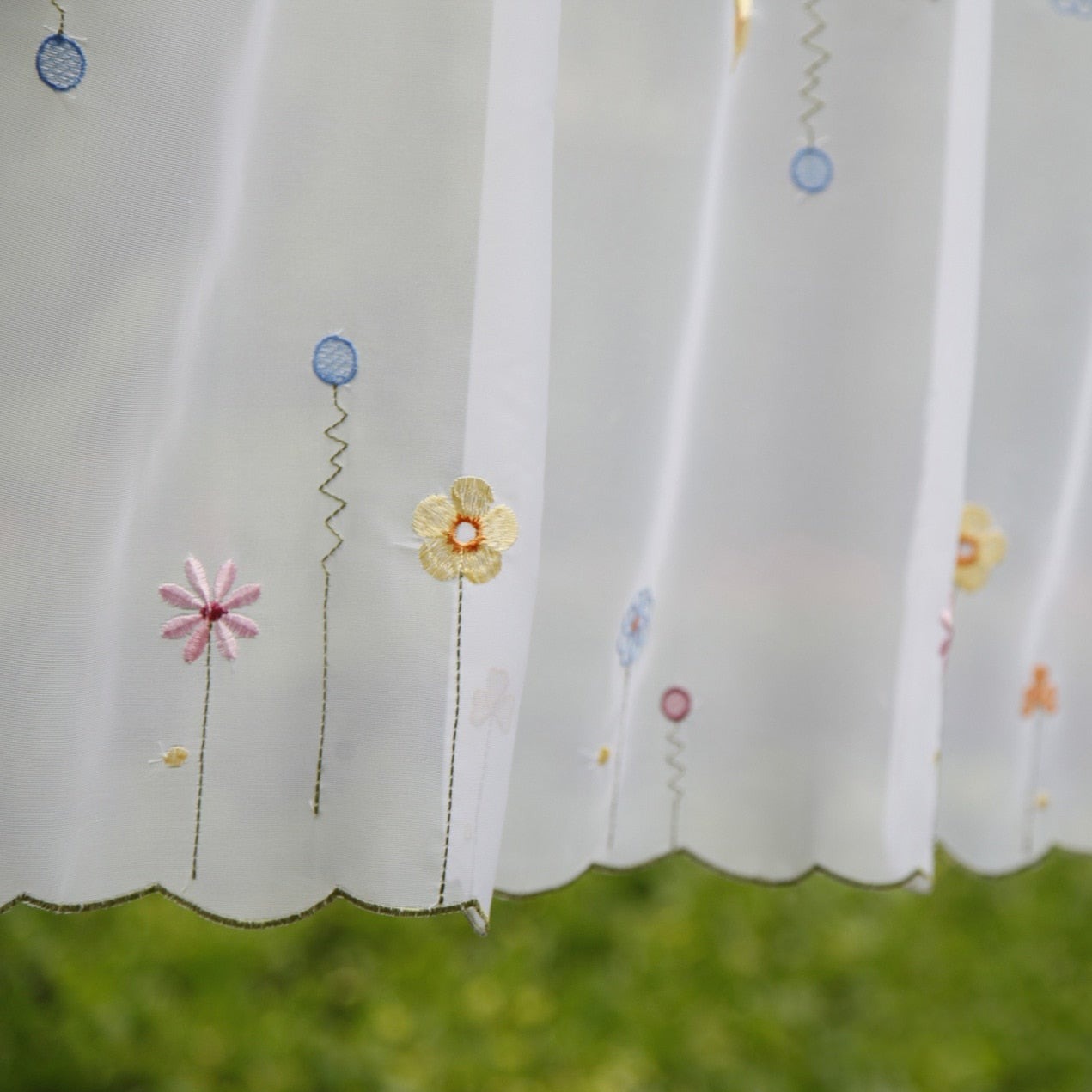 Dodejte svému interiéru svěžest s Krátkou záclonou s vyšívanými květy