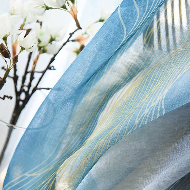 Vybíráte doplňky pro svůj domov a hledáte něco, co skutečně oživí váš prostor? Naše Modrá záclona se zlatým abstraktním vzorem je navržena tak, aby přinesla nejen funkčnost, ale i umělecký prvek do každé místnosti. Zlatý abstraktní vzor na klidném modrém pozadí připomíná jemné pírka nebo listí unášené větrem, což dodává zácloně dynamiku a sofistikovanost. Nejde jen o pouhý kus látky, ale o designový prvek, který vaší místnosti dodá pocit lehkosti a vzdušnosti. Je ideální pro ty, kteří chtějí do svého interiéru vnést moderní styl s nádechem přírodní inspirace, a zároveň si užívat soukromí a tlumeného slunečního světla. Její univerzální krása se snadno sladí s různými styly dekorace, od minimalistického po bohémský.