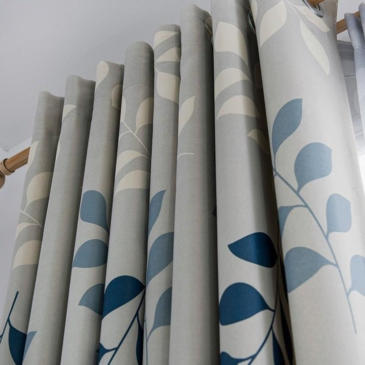 Modrý závěs s motivem listů Jamma: Vylepšete svůj domov stylem a elegancí