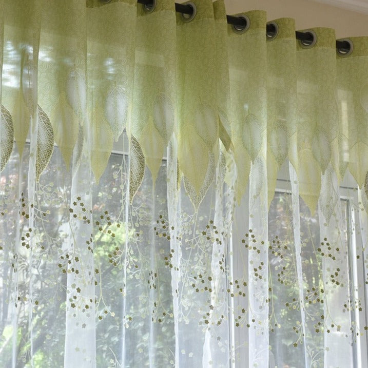 Průsvitná záclona se zelenými listy