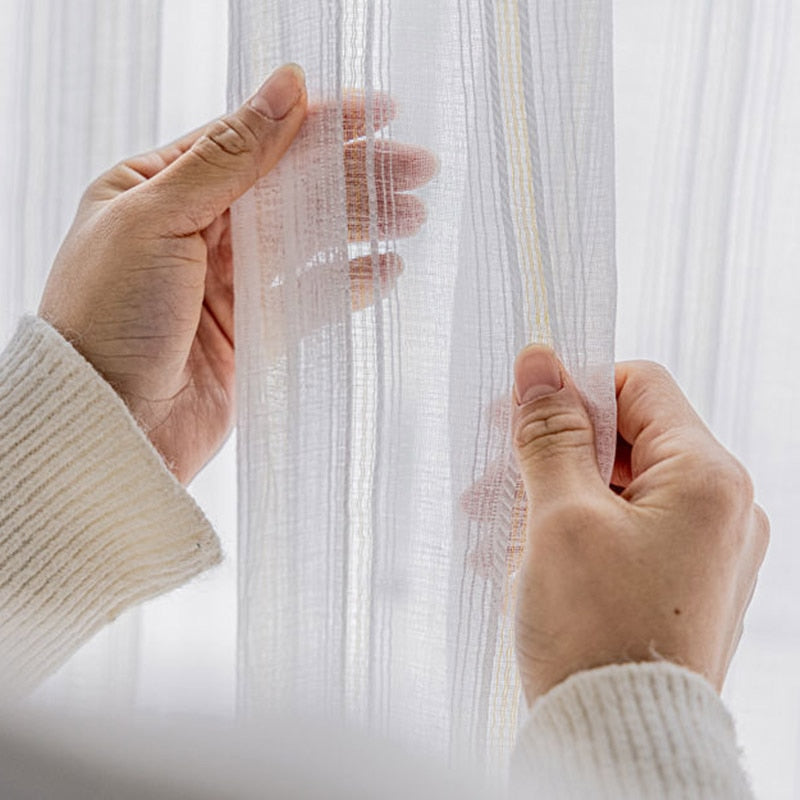 Představte si místnost zalitou jemným, rozptýleným světlem, které vytváří hřejivou a příjemnou atmosféru. Náš průsvitný závěs na suchý zip s proužky je přesně to, co potřebujete k oživení každého prostoru. Tyto závěsy nejsou jen praktickým doplňkem, ale stylovým prvkem, který jemně filtruje sluneční paprsky a zároveň diskrétně zachovává vaše soukromí. Jejich lehká tkanina a decentní proužky, v barvách jako je vidět na obrázku, dodají interiéru svěží a moderní vzhled, aniž by prostor působil těžce nebo přeplněně. Ať už je umístíte do obývacího pokoje, ložnice nebo kuchyně, okamžitě promění atmosféru a vnesou do vašeho domova pocit klidu a pohody.