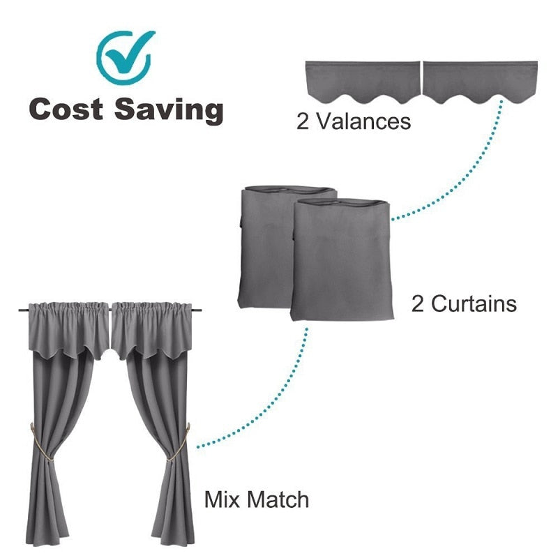Tato komplexní sada na pokrytí oken poskytuje vše, co potřebujete pro stylovou a funkční úpravu oken. Obdržíte dva elegantní volány s vlnitým okrajem, navržené tak, aby přidaly okouzlující dekorativní horní vrstvu s jejich výrazným vlnitým zakončením. Tyto volány jsou vybaveny praktickými úchytkami, což usnadňuje jejich nasunutí na záclonovou tyč pro úhledný a upravený vzhled. Doplňují je dva dlouhé zatemňovací závěsy, navržené tak, aby účinně blokovaly nežádoucí světlo a zajistily optimální tmu a soukromí. Jejich jednoduchý design s tunýlkem umožňuje vytvořit klasický a nabraný vzhled, zatímco vysoce kvalitní tkanina zajišťuje odolnost a vynikající schopnost zatemnění. Tmavě šedý odstín je univerzální a dodává každé místnosti nádech sofistikovanosti.