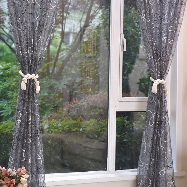 Osvěžte svůj domov s naší Šedou záclonou s abstraktní výšivkou