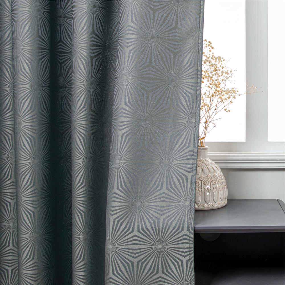 Klíčové vlastnosti šedého závěsu s moderním geometrickým vzorem: