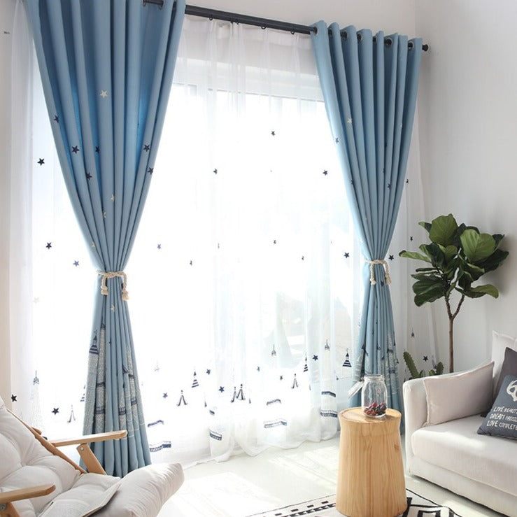 Naše krásná průsvitná záclona je vyrobena z vysoce kvalitní, lehké tkaniny, která nabízí soukromí i dostatek přirozeného světla. Pečlivě vyšívané tmavě modré motivy, znázorňující majáky, plachetnice a hravé hvězdy, jsou navrženy tak, aby zaujaly a inspirovaly. Každý detail je důkazem kvality, zaručující odolnost a nadčasový vzhled. Na rozdíl od těžkých, zatemňovacích závěsů, tato záclona zve slunce dovnitř a vytváří jasnou a vzdušnou atmosféru. Je snadno zavěsitelná a udržovatelná, což z ní činí praktický, avšak stylový doplněk do každého domova. Pocítíte hladkou, měkkou texturu a uvidíte, jak jemná výšivka zachycuje světlo, přidávající vašemu prostoru hloubku a charakter.