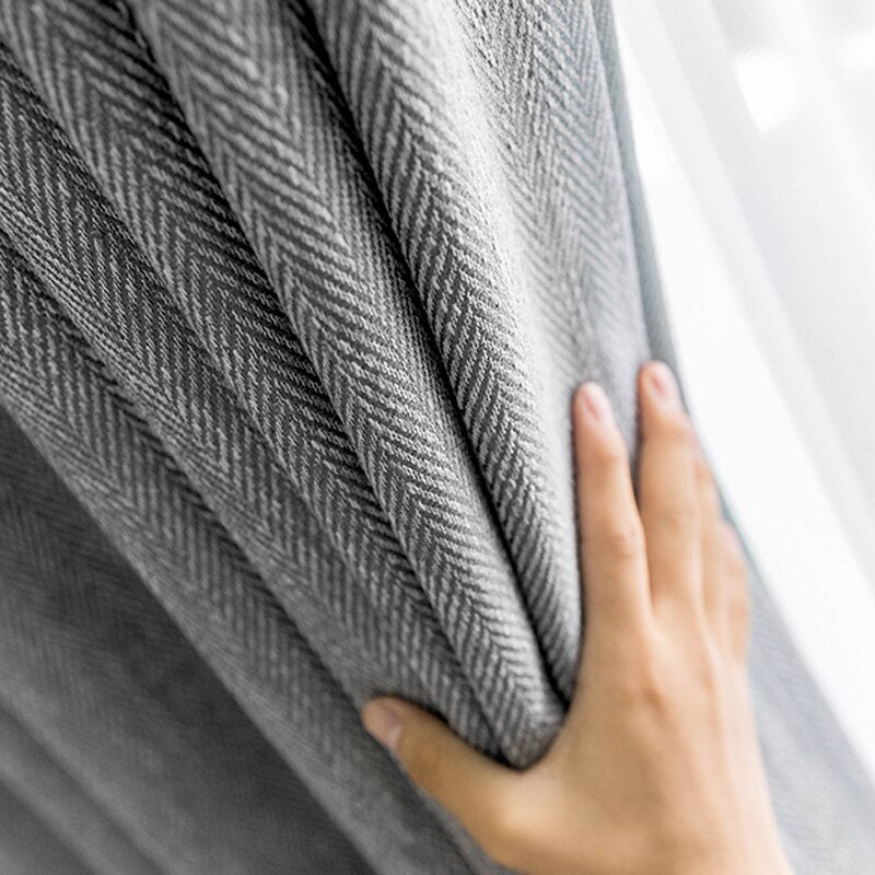 Hlavní výhody Tmavě šedého závěsu se vzorem rybí kosti