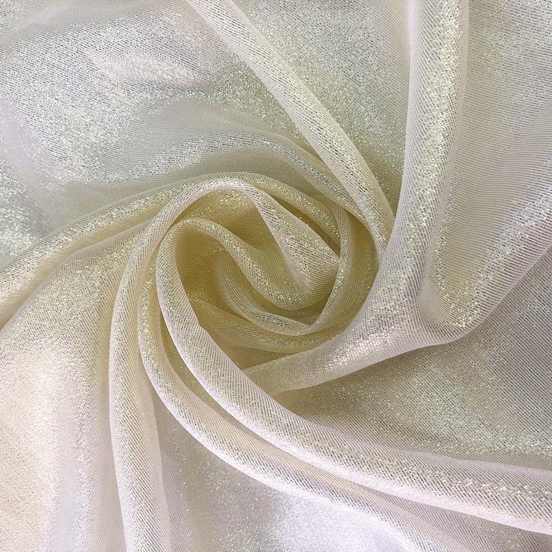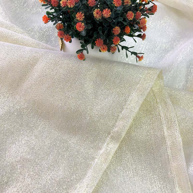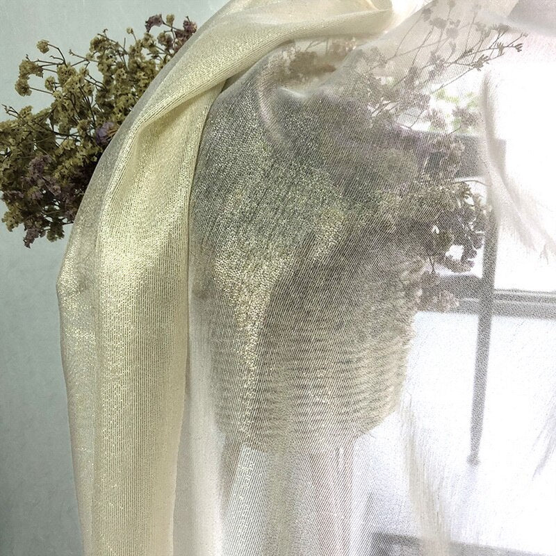 Tato záclona je mistrovským dílem jednoduchosti a třpytu. Je vyrobena z lehkého, průsvitného materiálu v odstínu krémové či světle zlaté barvy, který je protkán jemnými stříbrnými nitkami, jež tvoří její charakteristický jiskřivý efekt. Každý pohyb záclony a každá změna světla přináší nové a nové odlesky, které oživí váš prostor, aniž by ho zatížily. Skvěle se hodí k modernímu i klasickému nábytku a stane se nepřehlédnutelným prvkem vašeho domova, který upoutá pozornost a vyvolá obdiv. Její vzdušná textura navíc umožňuje snadnou manipulaci a krásné splývání.