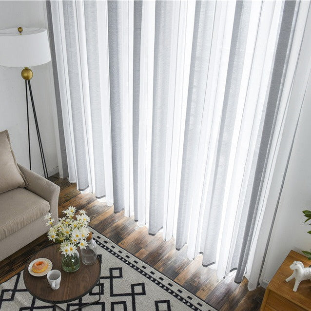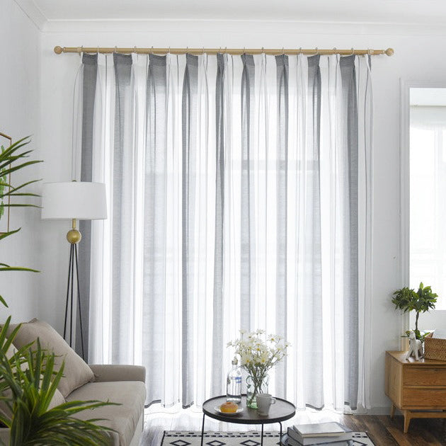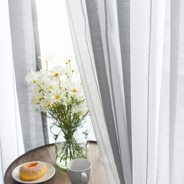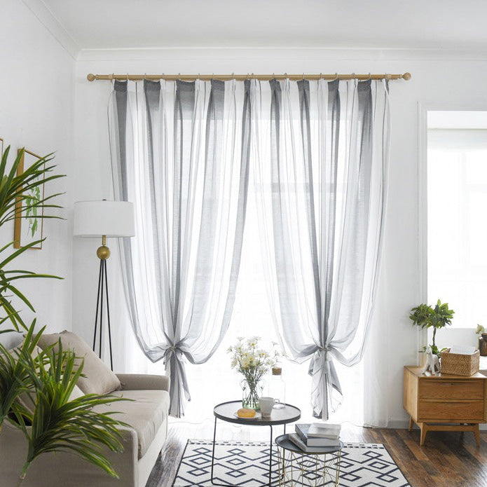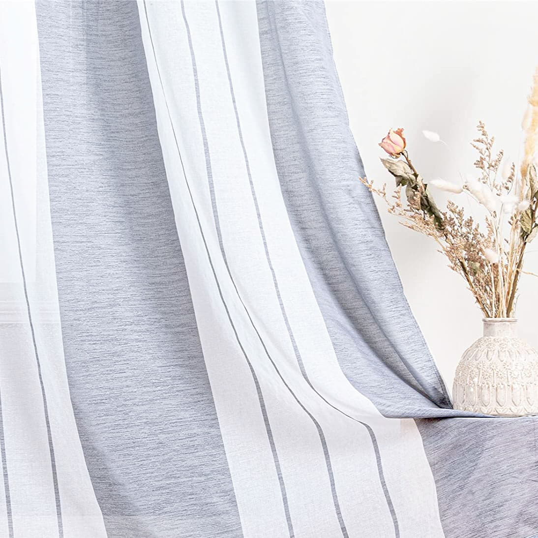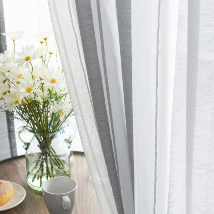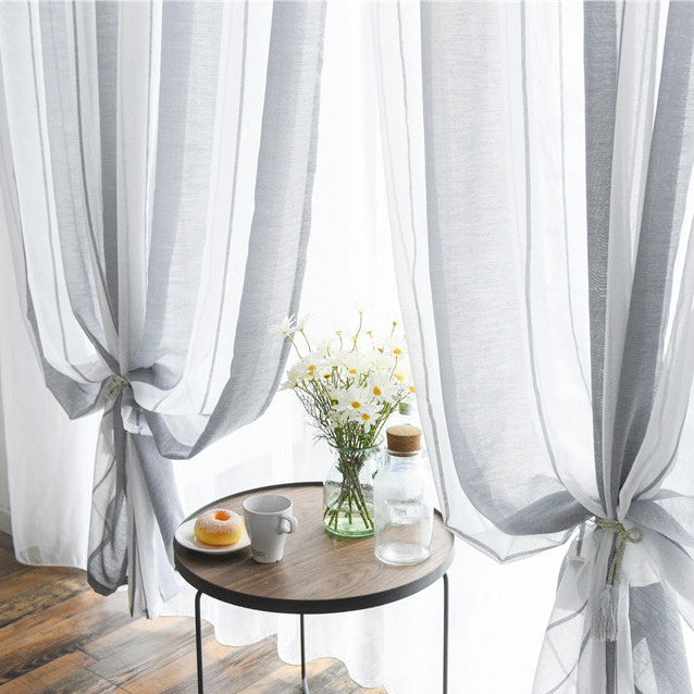 Objevte eleganci: Vzdušná záclona s šedými pruhy pro váš domov