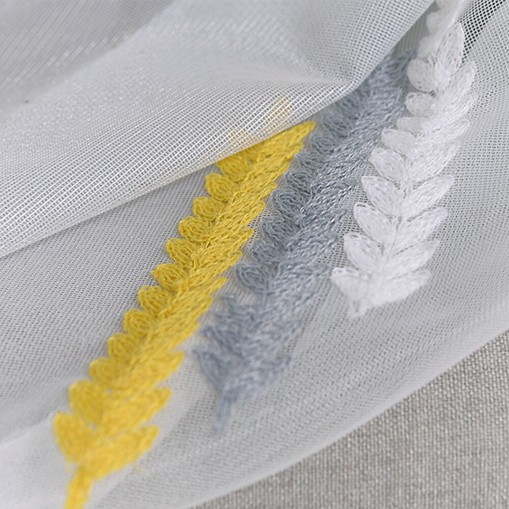 - **Elegantní design:** Jemná bílá síťovina s moderní žluto-šedou výšivkou pro současný vzhled.