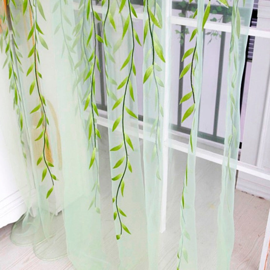 Zelená vyšívaná záclona s listy: Svěžest pro Váš Domov